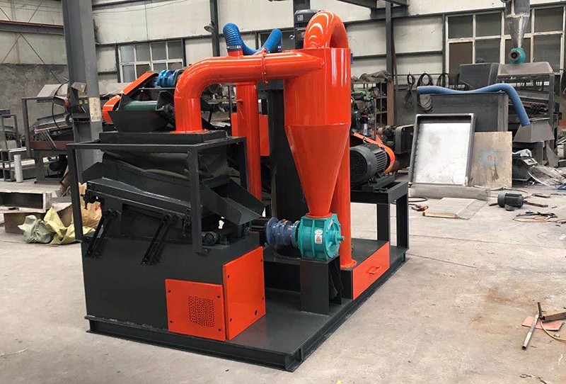 3.比重分選作為銅米、塑料分選的重要部分采用意大利氣流懸浮分選工藝,震動頻率與物料懸浮送風裝置皆可根據(jù)不同物料進行精準調(diào)節(jié)。